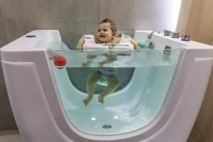 Baby Spa : Jacuzzi pour bébé de 2 mois à 1 an aux bienfaits magiques mentaux et moteurs.  Le Spa bébé est propice à la détente et à la relaxation et au développement du lien parents/ enfant.